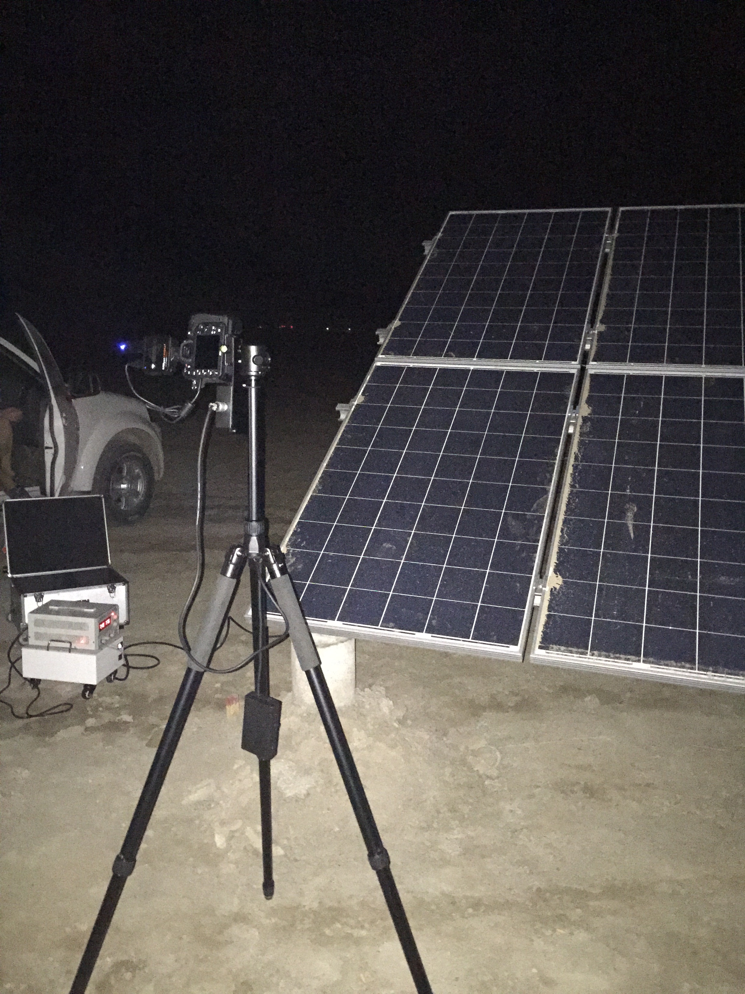 中電投新疆項(xiàng)目現(xiàn)場30MW光伏電站,支架上組件安裝后檢測,現(xiàn)場完成培訓(xùn)及相關(guān)工作,使用我公司便攜式EL檢測儀 LX-Z200標(biāo)配設(shè)備 搭配0~100V穩(wěn)壓電源檢測,同時(shí)檢測支架上上下雙組件,其設(shè)備具備的相機(jī)自動(dòng)對(duì)焦功能,無線傳輸操作功能,全景視野激光校準(zhǔn)功能充分得到現(xiàn)場工程師認(rèn)可。