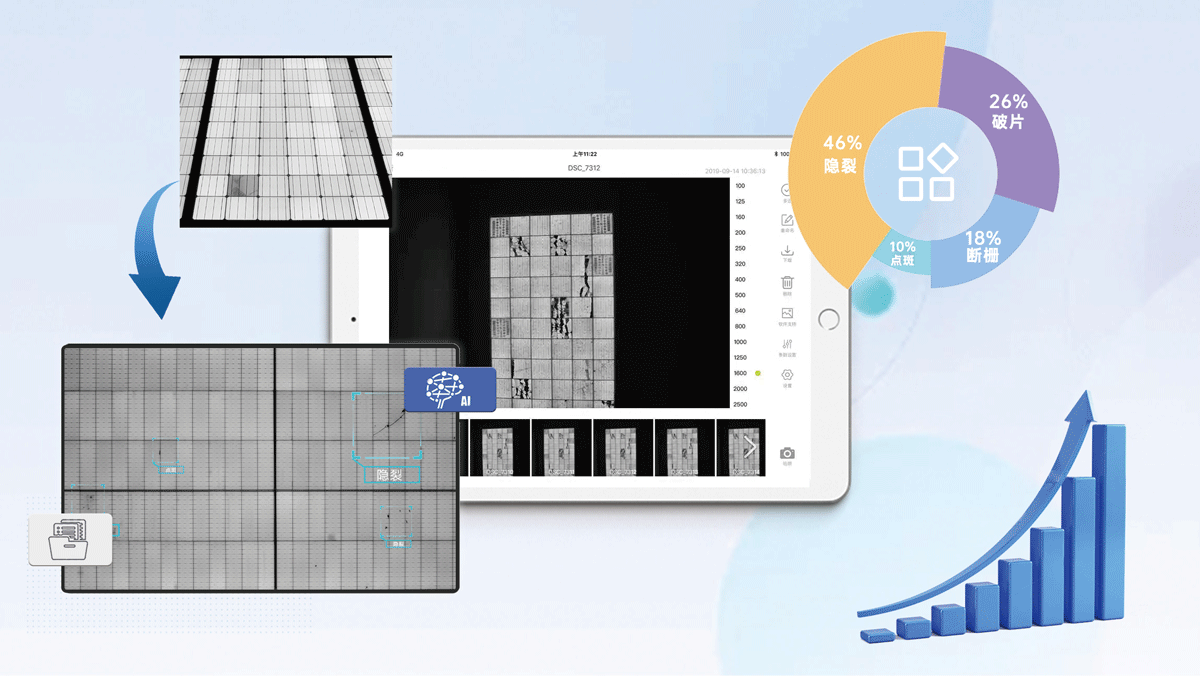 | 隱裂、斷柵、碎片、破片、燒結、虛焊、過刻、低效率片、混檔、衰減、熱斑衰減、PID |