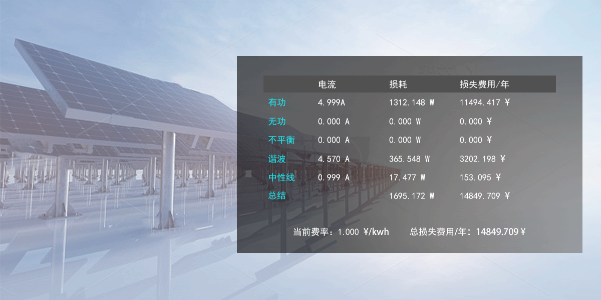 支持功率分解,詳細統計各類型參數引起的損耗功率,支持污染評估,同時通過貨幣的形式直觀展示能量損耗導致的經濟損失