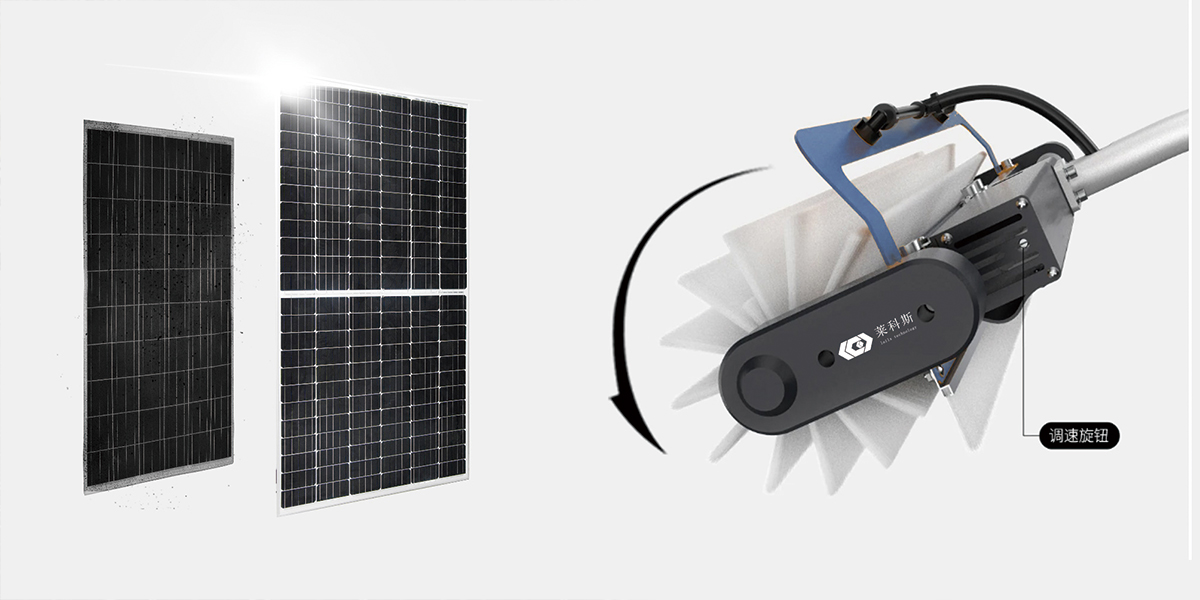 LX-H404滾刷光伏清洗機采用桿頭鵝頸設計,比直桿省力,更符合人體工程學,施工人員手握清潔桿按壓清洗更輕松,效率能明顯提高,一天可清洗約0.5-1.2MW。伸縮桿長1.5-7.5米,可自由伸縮,水洗干洗兩用,可適應各種復雜地形環境;鋰電池組續航約4-5小時,工作起來更加高效。產品設計合理,操作簡單,有效降低人員的勞動強度。