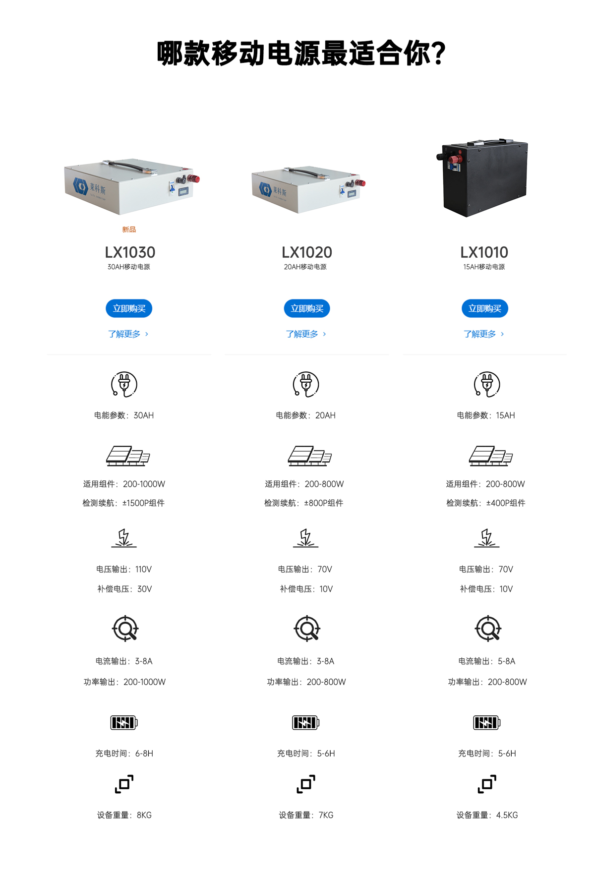移動電源為萊科斯針對光伏太陽能電池板反向上電特性所研發,通過直流電輸?電池板激發電致發光,從?進?EL的內部缺陷測試。