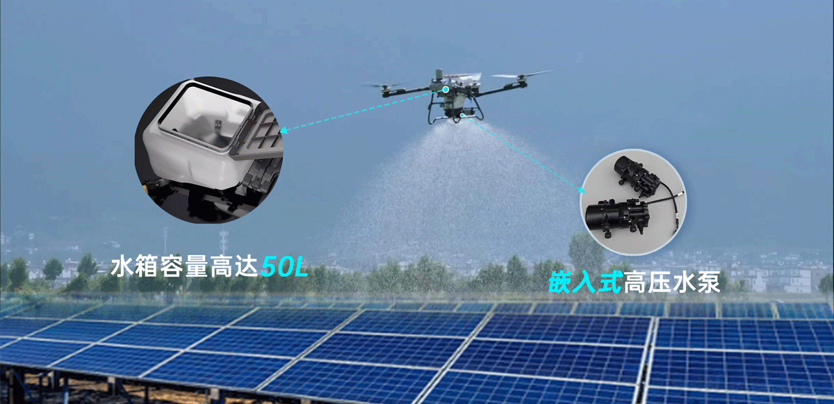 LXH233可載重60kg吊裝,不僅可滿?光伏?洗?常使?,同時可拓展,光伏組件吊裝以及設備裝置的吊裝?作使?,具備更多的應?場景。